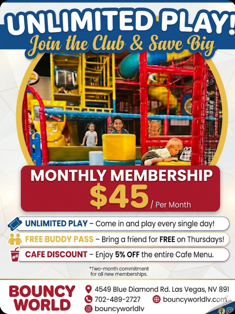 BOUNCY WORLD INDOOR MEGA PLAYLAND & CAFE' IS A SOCKS ONLY FACILITY FOR THE PURPOSE OF SANITATION. FORGOT SOCKS? NO WORRIES, JUST $3.00/PAIR.